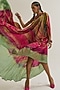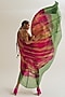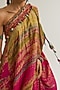 Featuring a fuchsia and sage off-shoulder dress in habutai silk base with hand embroidery. Accentuate it with statement earrings and heels for a festive look.