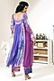 Featuring a purple and blue flared tunic in georgette and habutai silk base with floral digital print and embroidery. It is paired with matching pants.