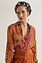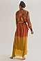 Featuring a rust and ochre shirt in linen, jute and habutai silk base with embroidery. It is paired with a skirt. Accentuate it with minimal jewellery and heels for evening wear.