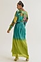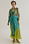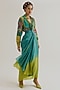 Featuring a turquoise and green ombre skirt in habutai silk base. Accentuate it with a top, statement earrings and heels for an evening party.