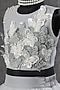 Featuring a light grey cropped top in net base with patchwork. It is paired with a matching skirt.