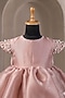 Onion Pink Organza Pearl Embellished Dress For Girls