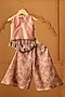 Featuring a peach top for girls in crushed tissue base with tassel detail. It is paired with printed flared sharara. Style it with cute hair accessories and sandals for festive occasions or sangeet ceremony.