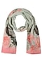 Featuring a mint base poly flat chiffon scarf with shades of pink floral and peacock digital print all over.