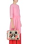 Featuring a mint floral pattern hand woven laptop bag in silk blend and brocade base with pure leather trim detailing. It has a metallic gold mirrored back and dual string handles.