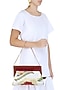 Featuring a white and maroon floral pattern pouch clutch bag in silk blend and brocade base with double velvet trims. It has a magnetic closure clasp and a long chain handle.