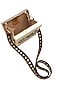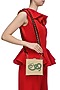 Featuring a white base clutch in gold metal frame with snake motif crystal work on nordic fabric.