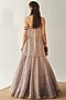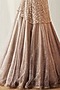 Featuring a misty grey lehenga in organza base with gold foil print. It is paired with a matching tulle tank top having pearl, sequins hand and machine embroidery.