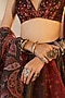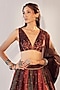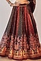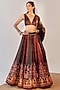 Featuring a multi-colored lehenga in dupion base with print, velvet borders and hand embroidery. It is paired with a matching velvet blouse and an organza printed dupatta.