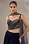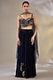 Featuring a blue lehenga in lycra base. It is paired with a blouse having cutdana, sequins and beads embellishments, including a dupatta. Style it with diamond earrings, a clutch bag and nude heels. Perfect for wedding, engagement ceremonies, receptions, or cocktail nights.