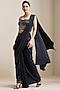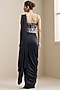 Featuring a blue pre-stitched saree in net and lycra base. It is paired with a corset blouse and pants having nalki, sequins, beads and crystals embellishments. Accentuate it with diamond jewellery and heels for a reception, cocktail, sangeet, wedding or engagement ceremony.