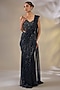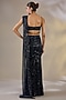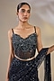 Featuring a blue stitched saree in net and embroidered fabric. It is paired with a corset blouse having nalki, sequin, cutdana, beads, crystal and stones embellishments. Style it with zircon earrings, a clutch bag and nude heels. Perfect for festive celebrations like Diwali parties, Bhai Dooj, engagement functions, receptions, or cocktail evenings.
