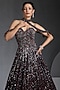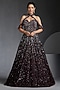 Featuring a brown gown in net base with sequins, pearls, stones and crystals embellishments. It is paired with an embroidered choker. Accentuate it with statement jewellery and heels for festive occasions.