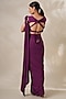 Featuring a burgundy saree in lycra base. It is paired with a matching blouse having cutdana, resham, 3D floral, and patra work. Style this saree set with a ruby necklace set and stilettos for a party.