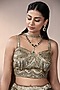 Chaashni by Maansi & Ketan features a mesmerizing Copper Lehenga Set that captivates with its elegance. The eye-catching lehenga is crafted in glass organza and net. It is paired with a blouse and a dupatta having sequins, cutdana, beads and stone embroidery. Style it with statement jewellery and heels for a wedding or engagement ceremony.