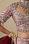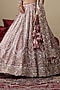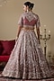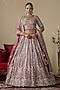Featuring a dark lavender lehenga in tissue organza and net fabric. It is paired with a blouse and a dupatta having thread, dabka, nakshi, pearls, mirror, glass beads, sequins embellishments. Accentuate it with heavy kundan jewellery, a floral hairdo and block heels to complete the bridal look, perfect for a wedding or engagement ceremonies.