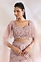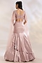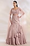 Featuring a dusty pink lehenga in imported satin and net base. It is paired with a choli having pearls, sequins, crystals and cutdana embellishment. Accentuate it with crystal drop earrings and a sleek metallic clutch for a refined, cohesive look, ideal for wedding receptions, sangeet nights or glamorous evening celebrations.