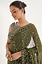 Featuring a green saree in georgette base with pearl, sequins, cutdana, beads and zircon hand embroidery. It is paired with an embellished blouse. Accentuate it with statement jewellery and heels for a wedding or festive party.