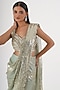 Featuring a green saree in net and silk base with sequins embellishment. It is paired with a blouse having sequins, beads, nalki and cutdana work. Accentuate it with statement earrings and heels for cocktail parties.