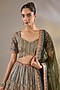Featuring a green lehenga in silk and net base with swarovski, sequins, pearl and mirror embellishments. It is paired with an embroidered blouse and a net dupatta. Style it with diamond earrings, a clutch bag and nude heels. Perfect for wedding, engagement ceremonies, receptions, or cocktail nights.