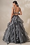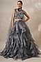 Featuring a grey layered lehenga in organza base. It is paired with a matching blouse having stone, sequins and cutdana embellishments, including a dupatta.