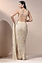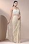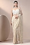 Featuring an ivory saree in chinon chiffon and net with pearl, beads and stones embroidery. It is paired with a blouse. Accentuate with statement earrings and heels for a festive occasion or wedding ceremony.
