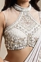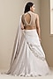 Featuring an ivory lehenga in net and organza fabric with an attached drape. It is paired with a blouse having sequins, cutdana, beads, pearls and zircons embellishments. Accentuate it with zircon jewellery, a floral hairdo and block heels for an engagement or wedding ceremony.
