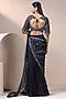 Featuring a navy blue lehenga saree in net and art crepe base having an attached drape, sequin, beads, cutdana, crystals and pearls embellishments. It is paired with a choli. Accentuate it with jewellery, a clutch and block heels for weddings or cocktail ceremonies.