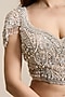 Featuring a nude pre-stitched saree in net and foil lycra base. It is paired with a corset blouse having stones, sequins, zircons, beads, cutdana and crystals embellishments. Accentuate it with diamond earrings and heels for a reception, cocktail, sangeet, wedding or engagement ceremony.
