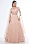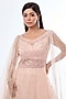 Featuring a peach gown in net base with cutdana, resham, sequins and stone embellishments. For an engagement or an evening wear, elevate your style with bold statement jewelry and chic, high heels.