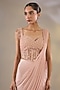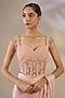 Featuring a peach stitched saree in net and shimmer lycra fabric. It is paired with a blouse having sequin, cutdana, zircons, beads and crystal embellishments. Style it with zircon earrings, a clutch bag and nude heels. Perfect for festive celebrations like Diwali parties, Bhai Dooj, engagement functions, receptions, or cocktail evenings.