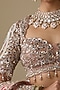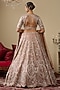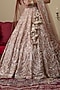 Featuring a pink lehenga in tissue organza and net fabric. It is paired with a blouse and a dupatta having thread, dabka, nakshi, pearls, mirror, glass beads, sequins embellishments. Accentuate it with heavy kundan jewellery, a floral hairdo and block heels to complete the bridal look, perfect for a wedding or engagement ceremonies.