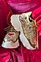 Store in a dust bag. Clean sole with a damp sponge. Wipe embellished parts gently with a dry cloth.