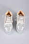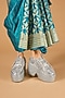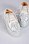 Featuring a pair of silver sneakers in vegan leather base with embroidery. It has 4-inch heels. Accentuate it with a lehenga or Indo-western bridal outfit for a modern twist, ideal for mehendi functions, cocktail nights or a wedding after-party where comfort meets statement style.