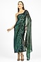 Featuring a black one-shoulder draped gown in stretch knit and sequins base with a shoulder trail. Accentuate it with statement jewellery and heels for evening events, upscale dinners or a sophisticated gathering.