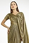Featuring a gold gown in self pleated knit base with a shoulder trail. Accentuate it with statement jewellery and heels for evening events, upscale dinners or a sophisticated gathering.