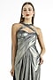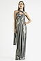 Featuring a metallic grey and blue gown in knit lame base with overlap sash strap. Accentuate it with statement jewellery and heels for evening events, upscale dinners or a sophisticated gathering.