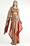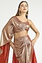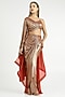 Featuring a metallic red crop top in knit lame and chiffon base. It is paired with a skirt having a trail. Accentuate it with statement jewellery or heels for a festive look.