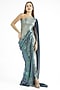 Featuring a metallic sea green draped gown in knit lame and georgette base. Accentuate it with statement jewellery and heels for evening events, upscale dinners or a sophisticated gathering.