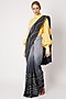 Featuring a navy blue to white ombre dyed saree in cotton tencel base with gingham checks. It has kantha, thread, and french knot embroidery. This contains only one piece.