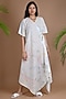 Featuring a white high-low dress in pure cotton base with shibori dye and knots embroidery.