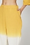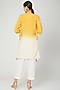 Featuring a yellow and white jacket dress in cotton linen base with belt. It is paired with matching pants having front buttons.
