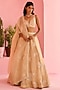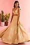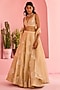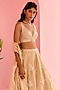 Featuring a beige lehenga in organza base with faux metallic leather embellishment. It is paired with a raw silk sweetheart neckline blouse having thread and faux metallic leather embroidery, including an organza dupatta. Accentuate it with dangler earrings and heels for wedding ceremonies.
