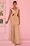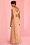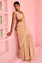 Featuring a beige frilled pre-draped saree in raw silk and georgette base with floral sequins embellishment. It is paired with an off-shoulder blouse having pearl and glass bead embroidery. Accentuate it with dangler earrings and block heels for weddings or sangeet ceremonies.