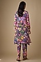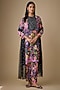Featuring a black kurta in georgette base with floral print. It is paired with pants and a tulle dupatta. Perfect for festive occasions, styled with dangler earrings and heels for an elegant look.