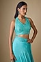 Featuring a blue saree in georgette and silk base with sequins embellishments. It is paired with a bralette having sequins and bead embellishments, including an underskirt. Perfect for festive occasions or wedding ceremonies, styled with heavy jewellery and heels for an unforgettable look.