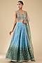 Blue & Green Ombre Jamawar Sequins Embroidered Lehenga Set