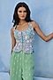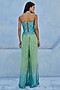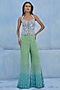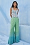Featuring a blue and green top in georgette and raw silk base with a halter neckline, zari, sequins, thread and glass bead embroidery. It is paired with sequin embellished flared pants. Accentuate it with dangler earrings and heels for festive events or evening soirees.