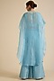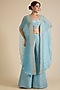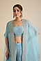Blue Organza Glass Beads Embroidered Cape Set