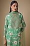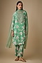 Featuring a green kurta in georgette base with floral print. It is paired with pants and a tulle dupatta. Perfect for festive occasions, styled with dangler earrings and heels for an elegant look.